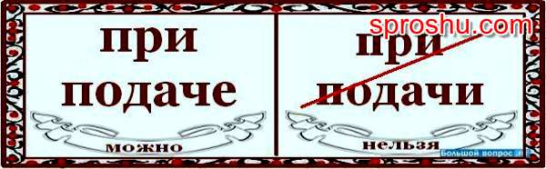 Как следует писать правильно «при подачи» или «при подаче»? Предлог «при», который мы сейчас видим непосредственно перед именем существительным «подача», — это достаточно верный признак предложного падежа. Собственно, в одном из вариантов, поданных в вопросе, предложный падеж и предложен: «при подаче». Это верное написание. Вариант «при подачи» вызывает значительные сомнения, поскольку нельзя не заметить в нём смешение предлога, требующего предложного падежа, «при» и формы «подачи» с окончанием «-и» , которая может быть родительным единств-го числа, именительным или винительным множ-го числа, но только не предложным падежом. То есть писать «при подачи» нельзя. Для правильного написания окончания нам нужно знать склонение и падеж данного нам существительного;. Подача — существительное второго склонения. В данном словосочетании оно стоит в предложном падеже, на что явно указывает предлог «при».