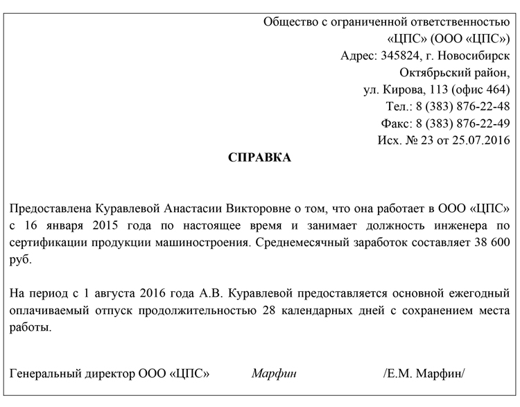 Как составить справку об отпуске с места работы