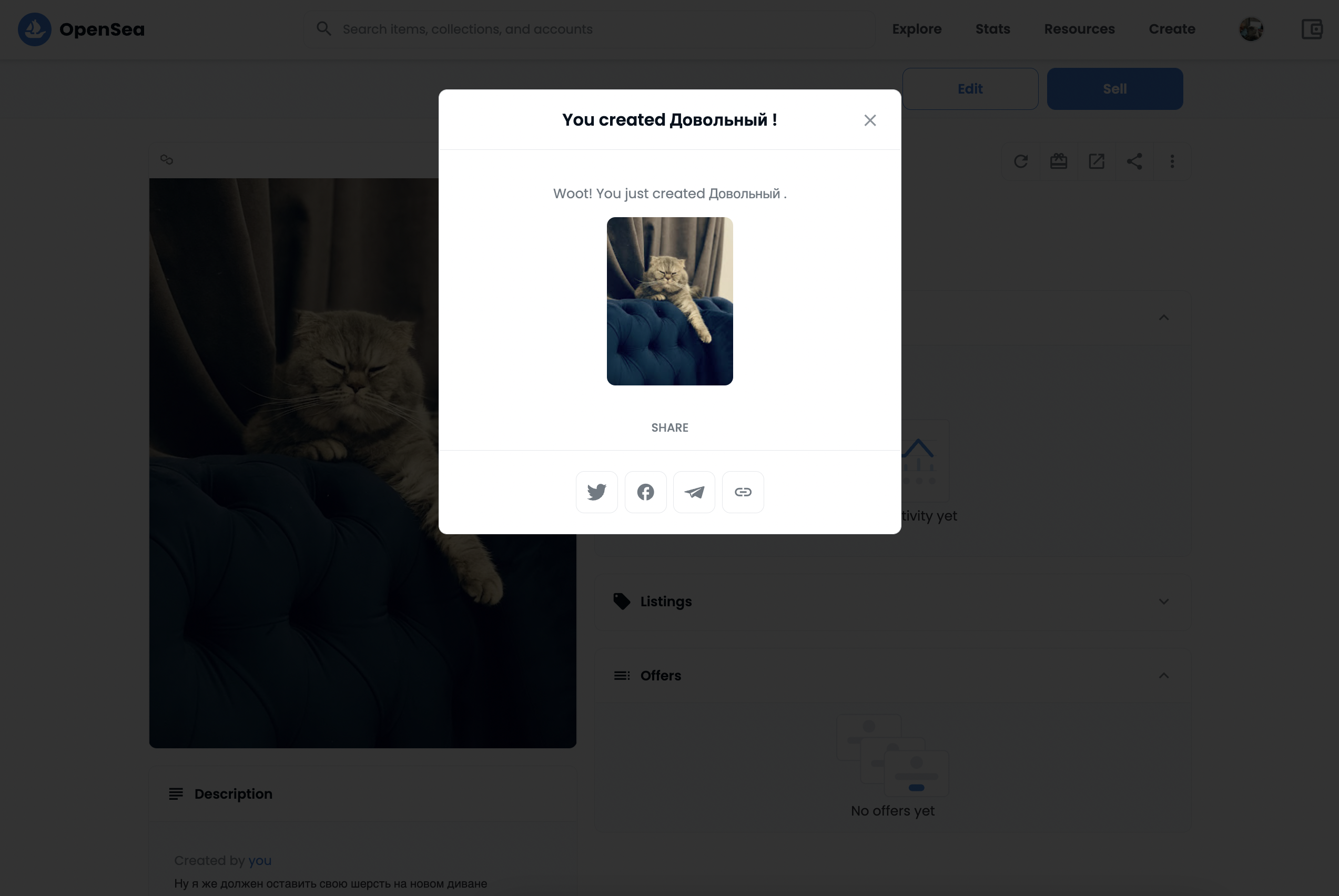 Поздравляю! Вы бесплатно создали NFT