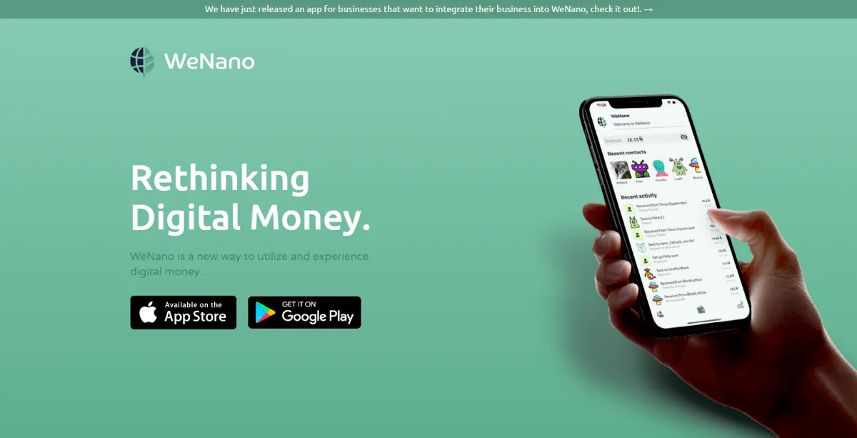 Во второй половине 2020 года разработчики выпустили приложение WeNano, направленное на расширение комьюнити, использующего криптовалюту для платежей. Число пользователей WeNano превысило 10 000, которые в совокупности провели более 2 500 платежей. Приложение ориентировано преимущественно на бразильских пользователей.